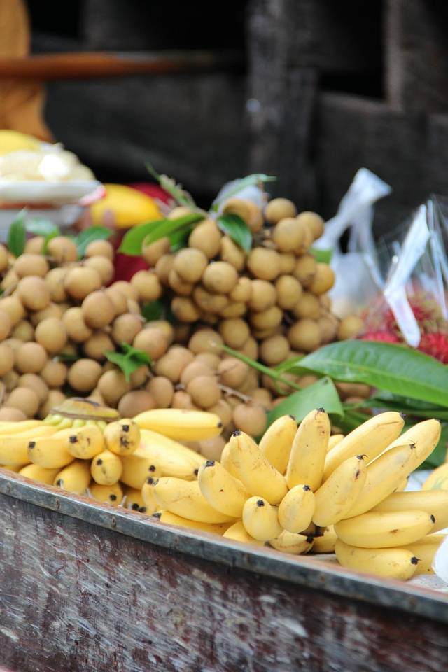 水上市场中,船上的水果虽然贵,但是看上去特别新鲜。