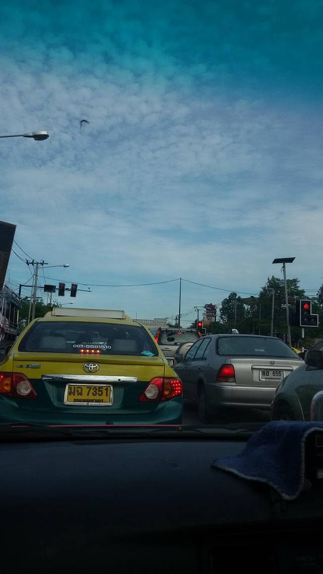 回酒店领回行李后,坐上去往芭提雅的车,天开始下小雨了。高速公路也会塞车,所以时间一定要充裕,要和酒店联系好。