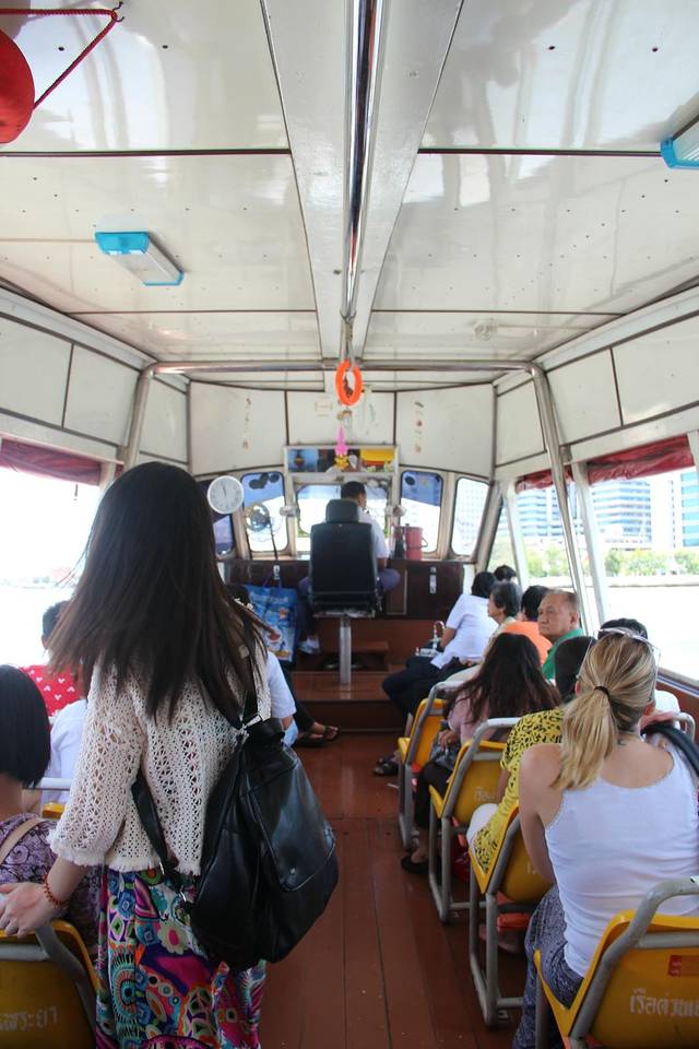顺着河岸走5min,到达码头。上船后有人工收费。