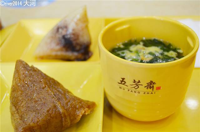 汽车北站门口正好吃午饭,五芳斋是嘉兴粽子的第一品牌,在嘉兴也提供快餐服务。五芳斋品牌自1921年创立至今,一直都是粽子的代表,大肉粽和豆沙粽味道都不错。
