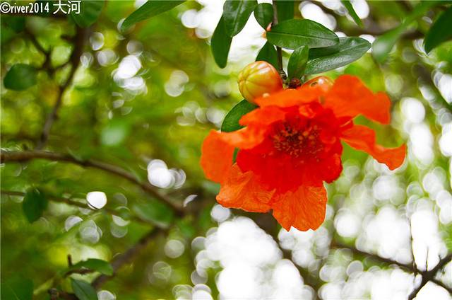 现在正值石榴花开,花并不大,红灿似火。在嘉兴市内处处可以见到石榴花。
