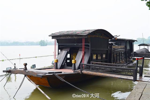 乘船前往小瀛洲,这是位于南湖湖边的一个景点,规模很小,这里也叫小烟雨楼。