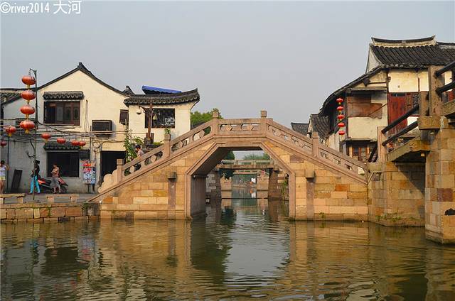 环秀桥,横跨南北,是距离石皮弄最近的一座拱桥。这里是欣赏古镇最佳的场所之一,桥上任何时候都站满了人,游船不停的穿梭在脚下,晚上的游船都会亮起红灯笼,更是不可多得的美景。