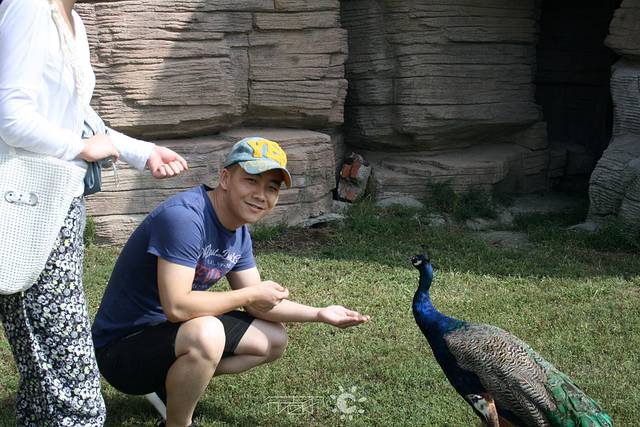 近距离喂食孔雀,原来她们很喜欢吃花生豆!