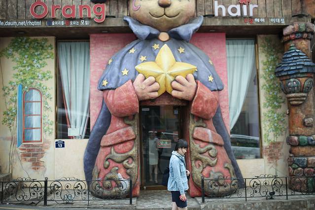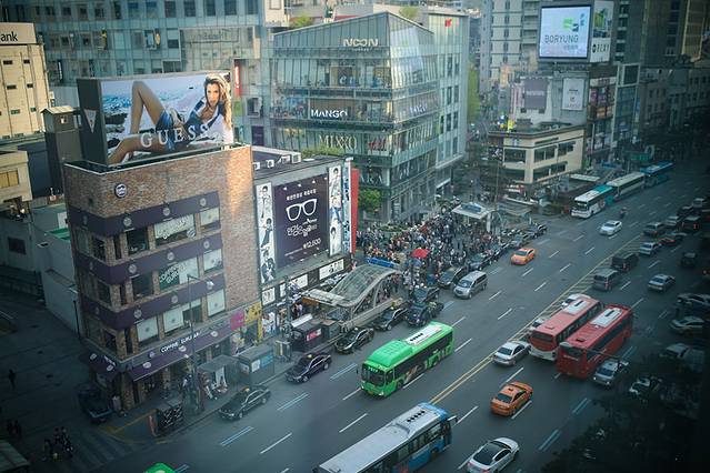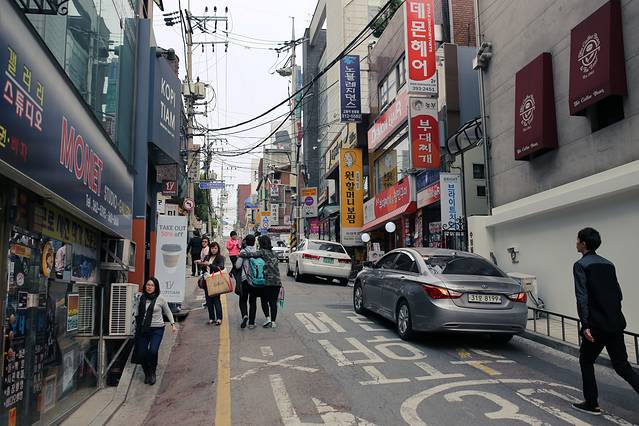 这里讲个大话题!~在首尔你经常会听到江南如何如何,江北如何如何,划分的很清楚,一如南韩、北韩!~韩国人似乎很爱规划和整理,许多商店都是一条街型的,某某街专门是卖婚纱的,某某街专门是卖家具的!~所以,江南就是富人区,江北就是穷人区,韩国应该是个阶级分层挺明显的国家,像继承者们的现象不仅出现在韩剧里,也出现在现实生活中!~