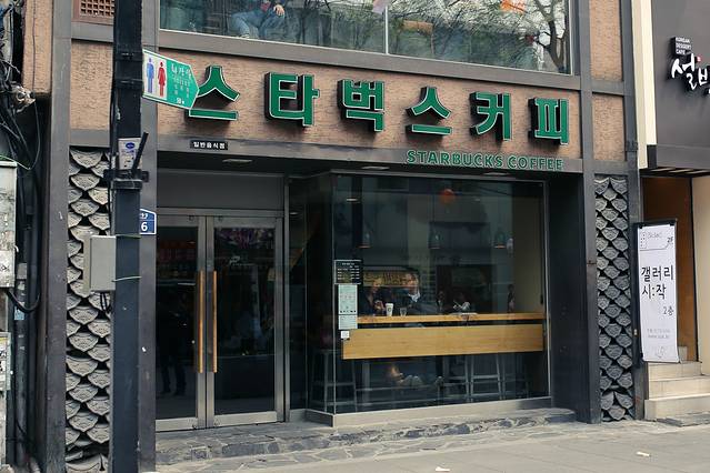首尔的年轻人非常爱喝咖啡,大街小巷也是充满着各色的咖啡店,同样也有非常多的韩剧会在各色咖啡馆里取景拍摄!~之所以把咖啡屋和艺术衔接在一起,正是因为,在梨大和弘大周边的咖啡屋里到处是散发着艺术气息或背着乐器、或背着画板的小女生、小男生!~咖啡馆的布置也是充满艺术气息,各具特色!~这次有进一些咖啡馆,包括星巴克,恩,都比国内的要好喝,咖啡味要浓郁些,然后奶味也要浓许多,咖啡和奶泡的融合感更好!~