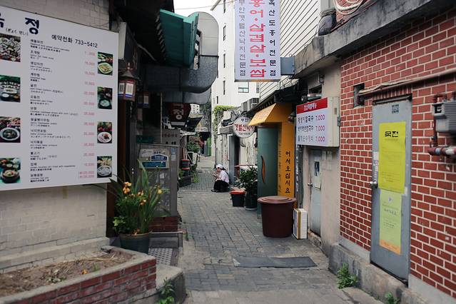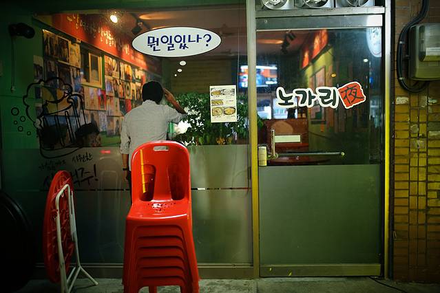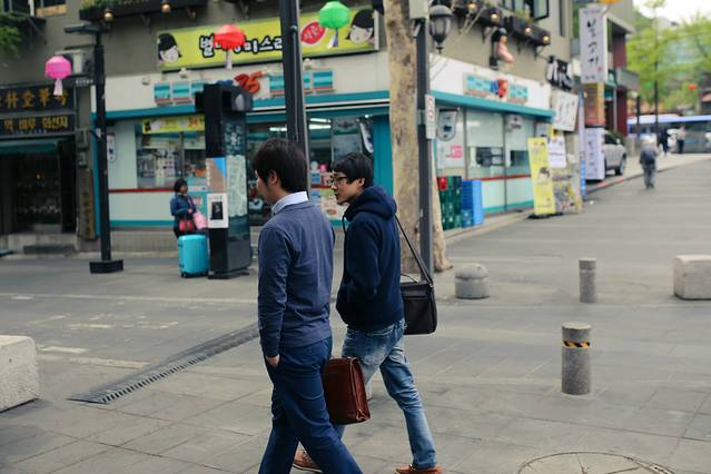 首尔的人非常有礼貌,相信去过首尔的同学都非常赞同,素质都非常的高,碰到问路什么的情况恨不得带你过去,有些甚至会主动过来问你需要什么帮助,有一次我在一家饭店和蛋蛋刚吃好饭出来拍照玩,一个大叔出来看到我们立刻主动过来说要不要合照,虽然这位大叔都还不会玩单反!~好吧,也许是这位大叔清酒喝的有些多了!~
