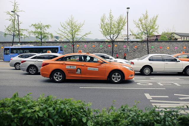 首尔的出租车非常的发达,它有分类,黑色是模范车比较贵,橙色、银色之类的普通车便宜些,但是我在首尔这些天一辆黑色的都没见过,也许黑色的车不起眼吧!~橙色的会比较好看见!~基本上打车在5000-10000韩元间,相当于上海打车的15块-30块的路程!~依旧是上海的乘以2,非常的准!~~~