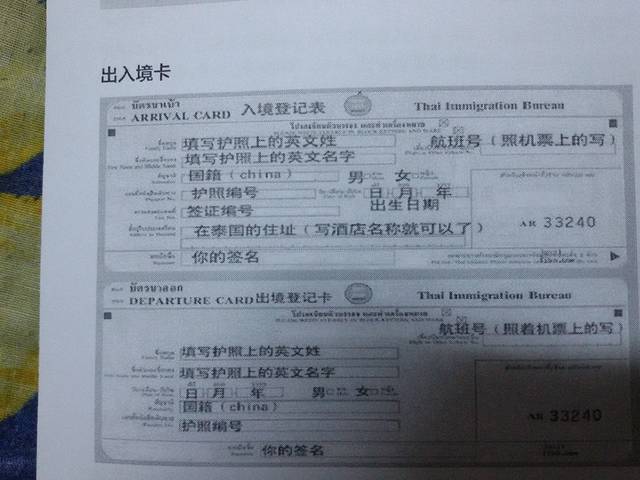 在网上找了入境卡和出境卡的样本,以防在飞机上领到的是泰文的表格。
