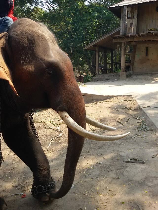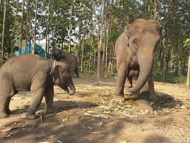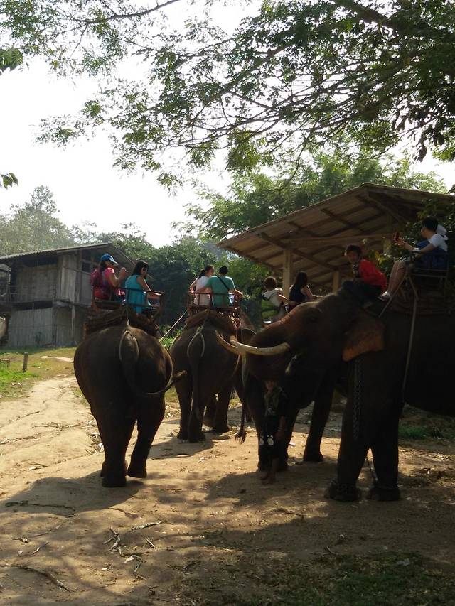大概1个小时车程,逐渐进入大山,到达大象营。我们没有去美莎大象营,而是选择了一个没有大象表演的项目,大象喂食、帮大象洗澡和徒步。