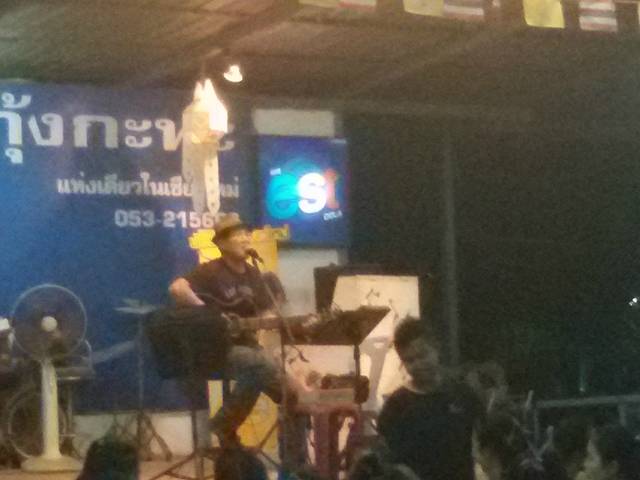 一边吃一边听现场演奏,歌曲跨度很大,英文、泰文、中文,歌手连闽南话的歌曲都会唱。