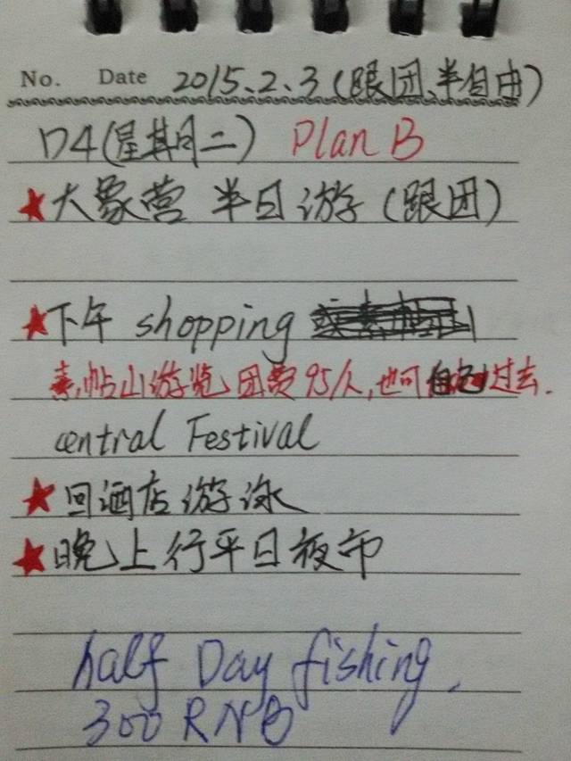 这是第二次自由行去,有了上次经验,这次出发前,制做了一个随身小本子。计划好每一天的行程,但是计划跟不上变化,所以计划在不断调整中。手机下载了个中泰翻译软件,中英翻译软件。出发前在某宝上购买了happy卡,到达泰国手机才能插卡哟,不然卡里的前会被扣掉,此卡打电话回国内灰常便宜,7天流量无限用。