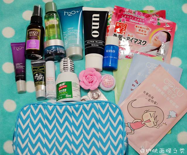 洗面奶、爽肤水、洗脸海绵、防晒乳、晒后修复面贴、头绳、牙具