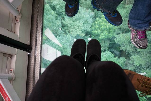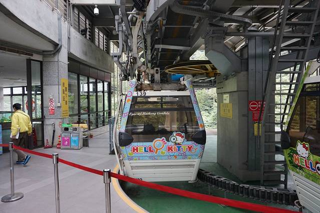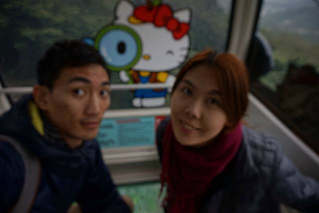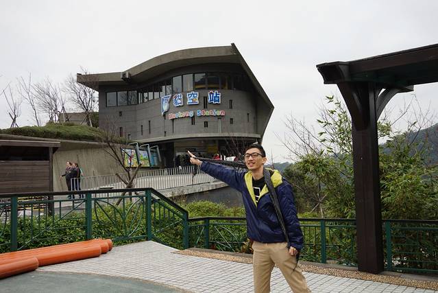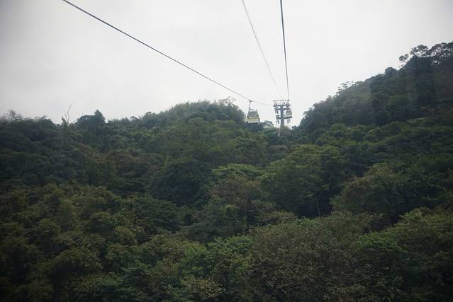 今天是高空之旅。吃完永和豆漿後,就乘捷運到達動物園,然後走了一會就到乘坐貓空纜車的地方了,可能還是太早了,水晶車廂竟然沒有人排隊。和一對外國夫婦還有小baby一起搭乘。今天風還是很大的,還是怕怕的。纜車開得很慢,慢慢的,越來越高,看著腳下的景色,雖然害怕,但更多的是讚嘆,老公有嚴重畏高,他一直很怕,特別是到每一個站,纜車都會卡一卡,那外國女生也是一路在叫oh my god。一路上老公極力掩飾他的不安,在到貓空之後,才緩緩舒了一口氣。在貓空走了一圈,很多茶館,也有小吃,但我們沒吃,就坐回纜車下去了,因為還要趕著去玩滑翔。