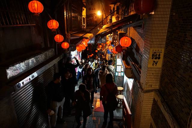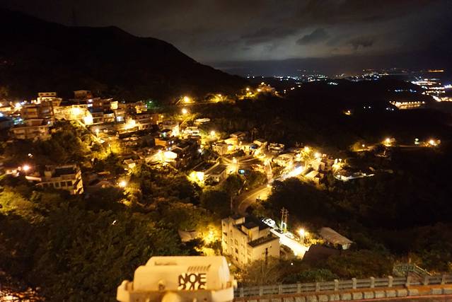 淡水一定要晚上去,才能看得出它的美。公車沿著蜿蜒的山路去到九份,沿路的風景很美。從山上望下去,那點點的燈光令人感到,就算很累,來到這裏也是很值得的,在这里有很多好吃的,例如芋圆啦,我是比较喜欢赖阿婆芋圆,秒杀广州任何一间卖芋圆的。当然还有很多特色的店铺,可以慢慢逛逛哦。但要看着时间,这里末班公车比较早收。帶著不捨我們還要趕公車回瑞芳,接着我们就去松山饒河街夜市。