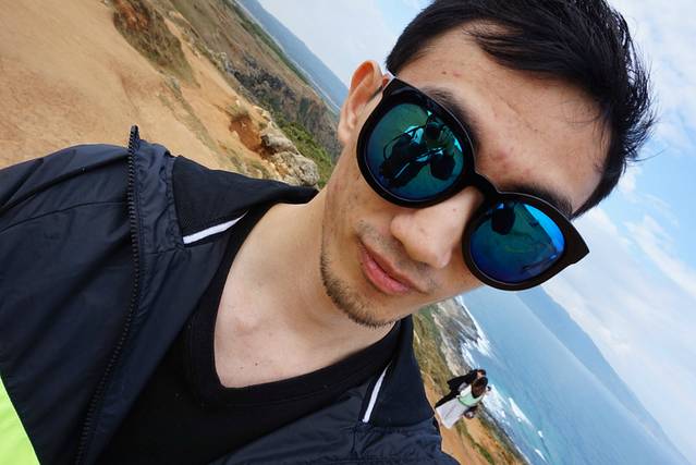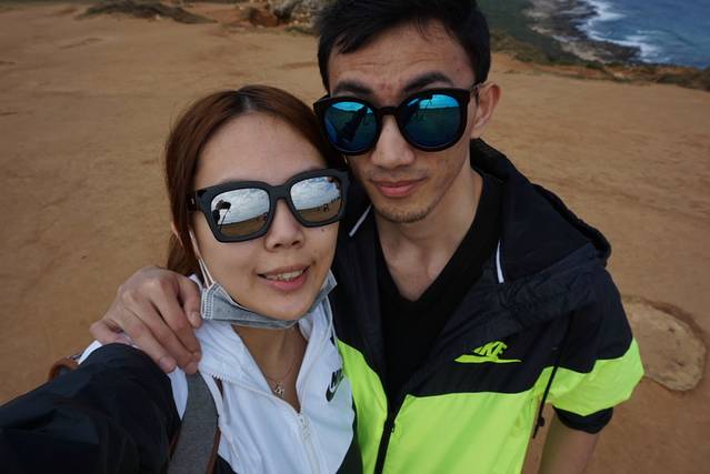 然後就直上龍盤公園。龍盤公園在山頂,能看到巴士海峽和太平洋交匯的地方,看著這海景,很壮观呢!真感嘆人類的渺小。在龍盤公園各種裝逼拍照,然後就去龍盤公園餐飲部附近吃中飯(因为这边可以帮小红充电呢)。我們挑了一家是小狗當店主的舖。小狗叫瑪莉,好可愛呢。