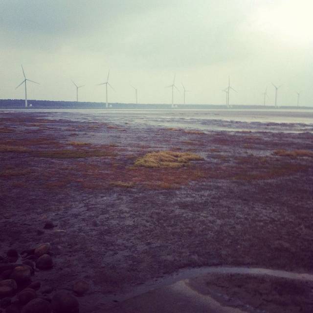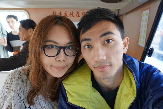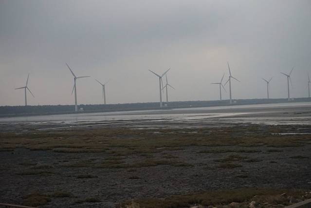 我們失算了,因為不知道原來台中沒有捷運之餘,到高美湿地的公車也是一天只有4班。1點多到台中,到達民宿已經2點了(公車搭了很久,因為在兜路,而且台中的公車8公里內是免費的)出發時已經2點半了,我們還坐錯公車(其實木有錯的,但兜路兜了好久)直到4點半才到清水。在公車上一直害怕趕不及看日落,有點失神,一下公車,立刻有位老師父問我們是不是去高美,他可以載我們去。想了想我們還是決定乘坐這老師父的的士,趕去高美。看到風車的時候,老師父還幫我們拍照,然後再送我們到裡面。原本很好太陽的,殊不知,我們到達沒多久後,天就開始陰了。我們沿著步道一直走,但是特別的大風,我很害怕,就和老公說別走到盡頭了。然後我們就在步道拍拍拍,看看那些鶴,看著風吹到水上,感受那個風力,大自然真令人生畏。看不到日落,公車在7點才發車,原本想着慢慢吃着烤鱿鱼等公车,但看到兩對情侶想包车,便和他們一起包車回逢甲。就是交通不怎么方便,太可惜了。