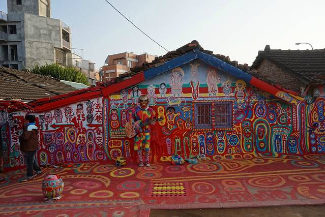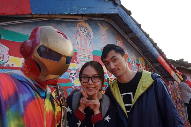 今天是休息天,只管隨便走走。下午突發奇想,去了彩虹眷村。聽說彩虹村是彩虹爺爺努力才得以保存下來的。很佩服爺爺哦。那個歌手好搞笑呢,看著他和別人互動超級好笑,我和老公也上前和他合照,然後再逛逛,就離開彩虹村了。记得要投币给彩虹爷爷买颜料,继续创作哦。