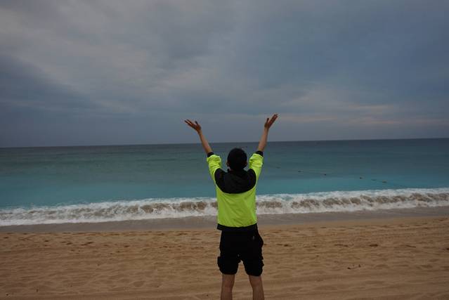 這裏是拍少年pi的地方哦,真的很美!来到沙滩第一件事就是买沙滩鞋,海水藍藍的,天空藍藍的,水天一色,水清沙幼,墾丁真是個好地方。我們在沙灘玩耍,老公还摆了好多好好笑的pose让我拍照,私人珍藏哦,有天你惹我不开心,我就公开这些照片好了,真的好開心。因为来到这边的时候已经是4点多了,所以我们只逗留了45分钟看到天色已晚就立馬騎車回後壁湖。
