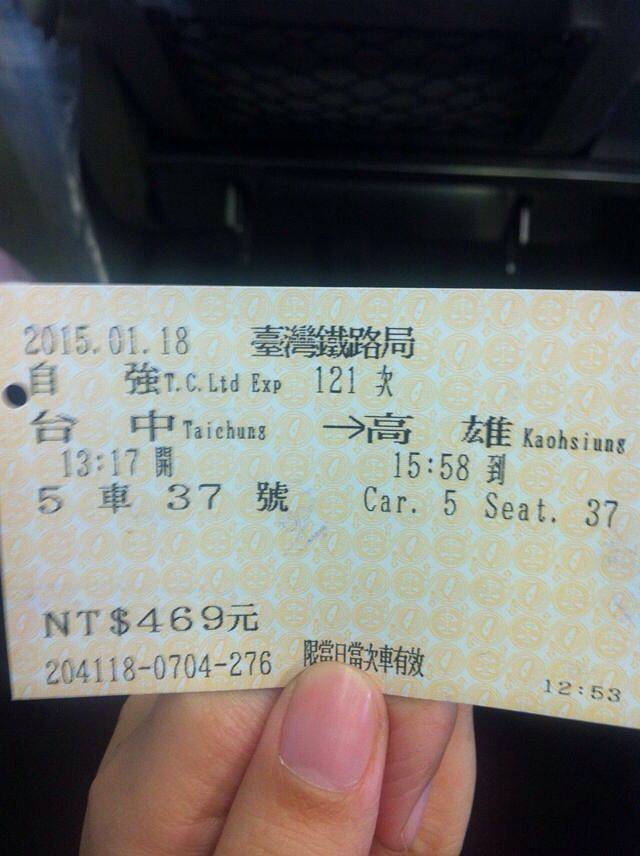台北到台中的车票,赶时间的可以坐高铁哦,不过费用就贵1倍左右啦。