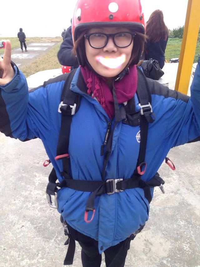 滑翔傘是我來台灣最想玩的,可以說是奔著它來的。之前我最喜歡的一隊樂隊Mr·出了國語專輯,其中一首《飛行的一百個理由》的MV就是在這個野馬飛行那裏拍的。到台北車站A塔乘坐1815到萬里橋頭打電話給教練,就有車接送了。好緊張哦!一去到,教練立刻叫我穿外套,因為飛起來會很冷,做好一切安全措施之後,我卻開始害怕了!最後在老公和教練的說服中,準備開始飛起來了。等風把降落傘吹起來之後,人就飛起來了,慢慢的,看著前面的萬里港,我卻不再害怕,更何況身後還有老公。終於適應了,卻很快就到時間了,總覺得時間過的很快,原來一下就12分鐘了。降落的時候有點害怕,因為我是怕極了離心力,我從不坐過山車,這也算是緣了一次夢了,挑戰自己。飛完之後教練就載我們下山,坐車回台北了。如果想去的朋友可以百度一下野马飞行就会有资料了,可以找到教练电话,还有如何到达哦。