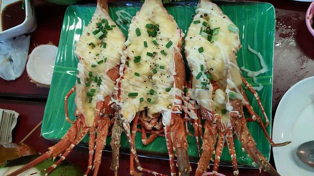 又是一天的包车游,东线海滩和江西冷。午餐来到攻略的巴东海鲜市场,从人妖哥哥那买的老虎虾,龙虾,鱿鱼等。二楼加工,你的厨房那人太多了,等要2到3小时,我们在No9号加的工,也很棒!晚餐发现在海鲜市场旁的夜市更便宜。