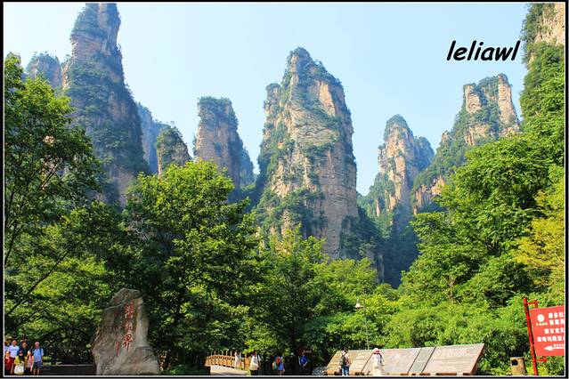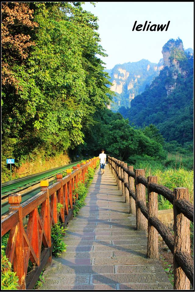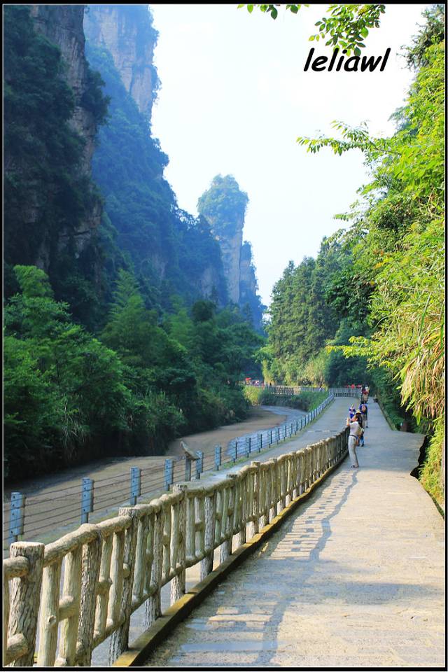 下午游览金鞭溪,全长7.5公里,我们走完全程即到水绕四门,坐景区内游览车可到十里画廊和(武陵源标志大门) 。我们就住在武陵源标志大门外的索溪峪。如果保存体力的话金鞭溪可以不走完,全程景致大同小异,走一段看看即可。