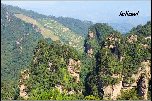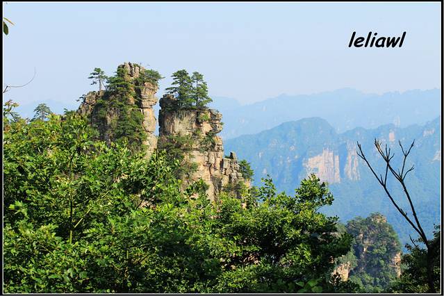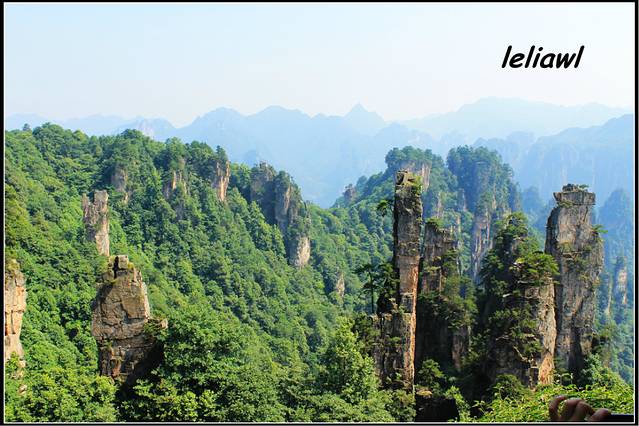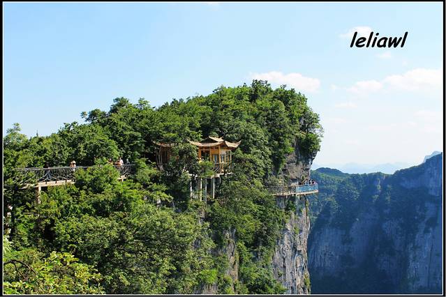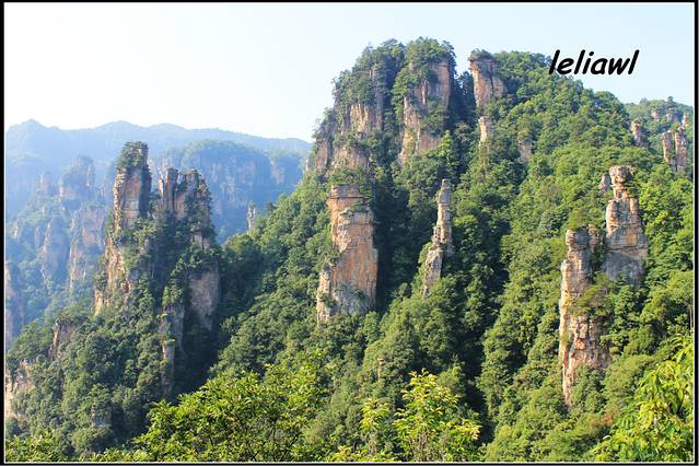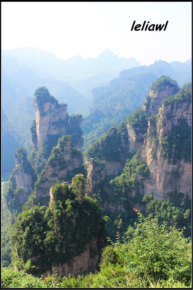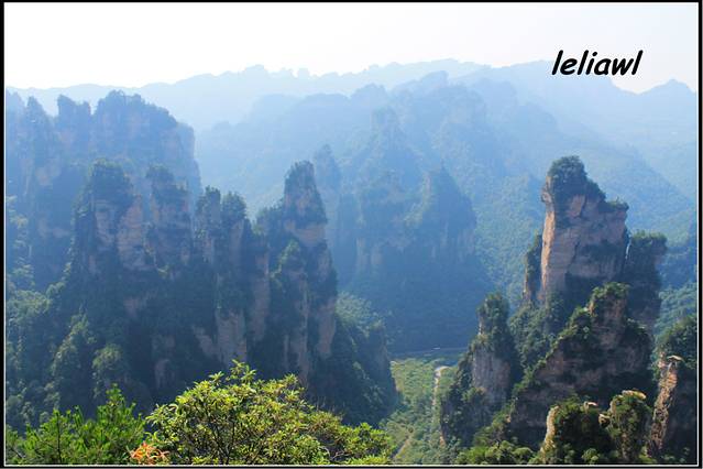 参观过袁家寨子乘观光车大约半个多小时的路程到达天子山贺龙公园站,开始天子山的游览,顺着贺龙元帅雕像的右手边顺着走一路览景到御笔锋处就是下山的路了。顺便说一下,这一路上竟然有个麦当劳,真是感觉万分不协调!!!鄙视!!!
