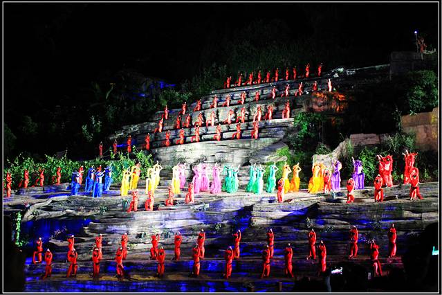 晚上去看了演出,在魅力湘西和天门狐仙中,选了天门狐仙,天门山脚下的实景演出,效果不错,至少我们觉得看了不后悔(纯属个人意见)。