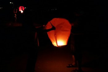 晚餐后到东沙沙滩边散步,偶遇孔明灯售卖。写下愿望,一同放飞。孔明灯冉冉升起,飞向远处的山顶!