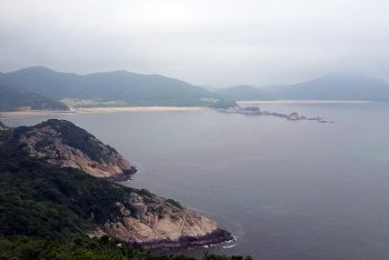 第二天驱车前往大青山,盘山路只开放到牛头山景点,然后原路返回。中间路过千步沙,里沙景点,可停留停车场,下车游玩。里沙的沙滩潮湿紧实,海水呈绿色,色彩分层,游客稀少。清晨在这里散步,孩子戏水,很悠闲舒适。牛头山俯瞰整个朱家尖景区,为都市忙碌的人们带来一份舒畅!