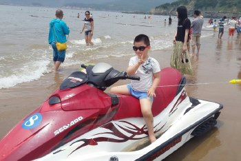 从大青山下来时间尚早,进去南沙海滨,可以游泳,玩摩托艇。这里游客众多,开发成熟,游泳安全,有更衣室,沙滩绵软细密,每年在这里有沙雕展。