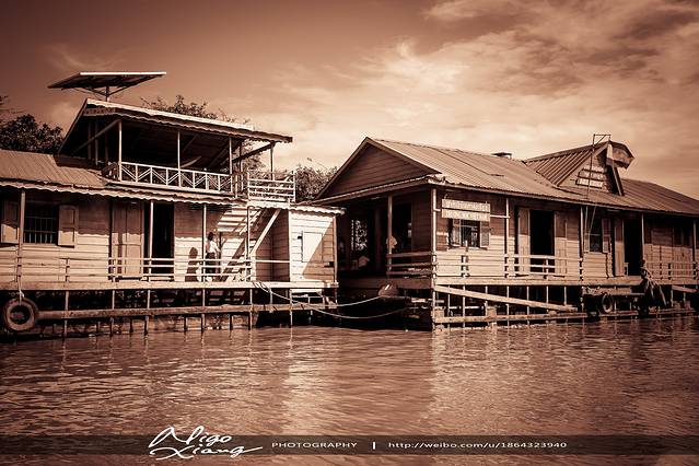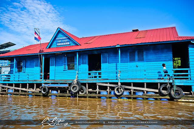 这是洞里萨湖的水上学校!~这个学校里的孩子都是孤儿!~