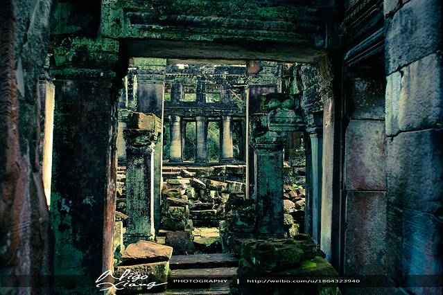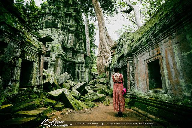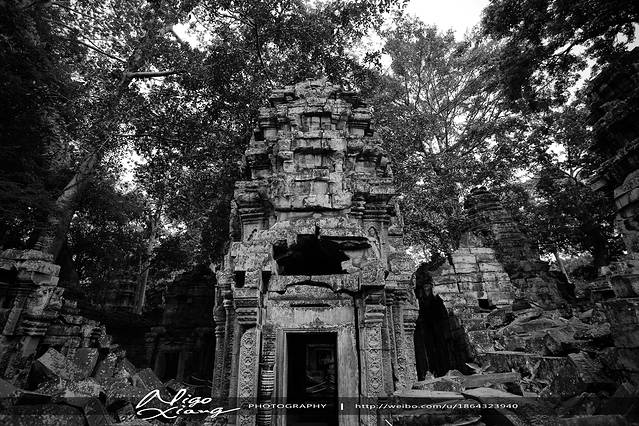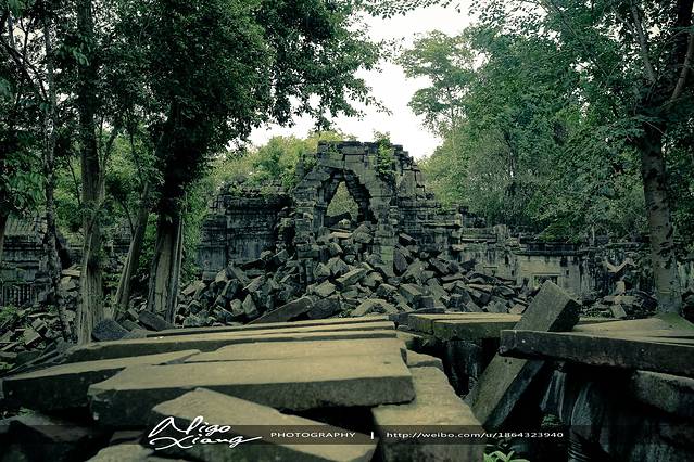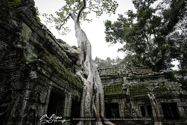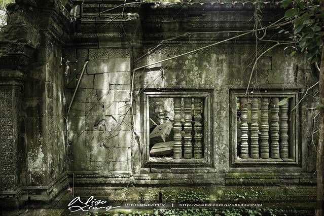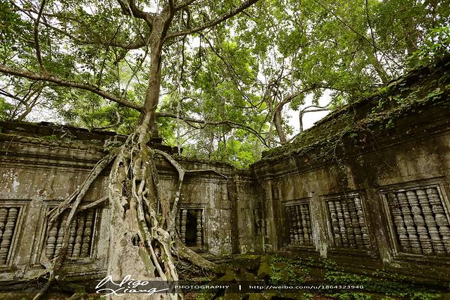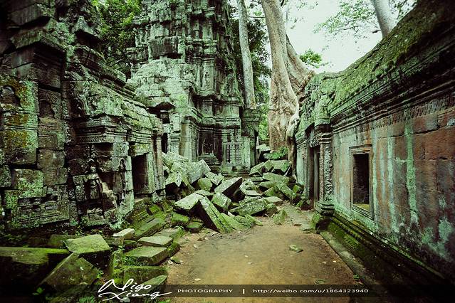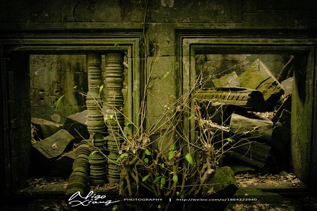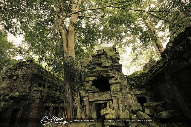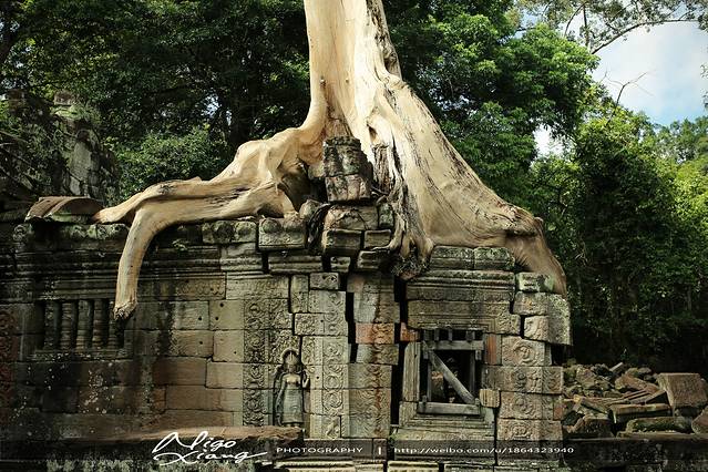 树枝密密麻麻,使阳光难以穿透,甚至封住了寺庙的门窗。有的大树骑跨着围墙,撑破穿透了建筑,导致众多寺院顶住的砖石全部倒塌下来,形成了多废墟!~