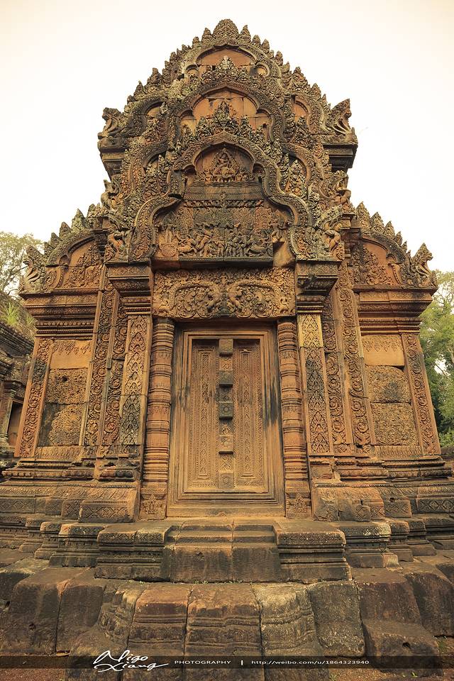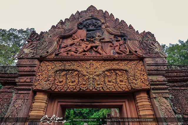 女王宫的美来自精致的雕刻。纵深百米的庙宇,每根石柱、每个门楣,都非常精细地雕刻着,或神、或鬼、或兽、或人,无一处遗漏!~