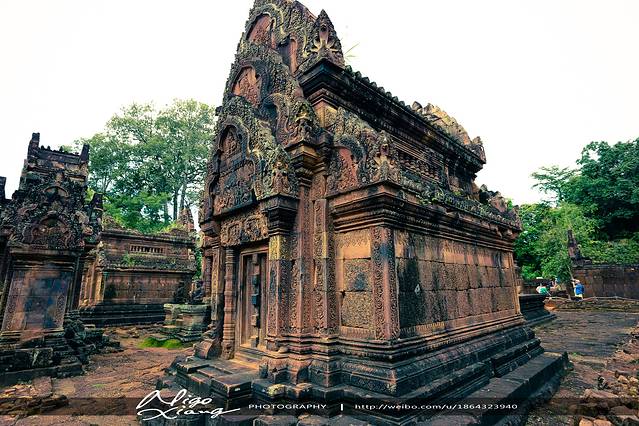 女王宫(Banteay Seri)距离吴哥城东南约25公里。走进女王宫,满眼都是红色的精致浮雕。女王宫并非顾名思义,当然我一开始也是觉得可能是某个女王的宫殿,其实不然,它是因为精致的建筑,相传是女性工匠所为,所以才被成为“女王宫"。站在女王宫前,不由得被它那精美的雕刻震慑。壁龛里梳着辫子、身着简单而宽松的长裙的仙女们记手持长矛、莲花的守护神栩栩如生,外墙、宫门和门楣上的花纹浮雕优美细腻,完美的令人叹为观止,被誉为“吴哥古迹的灿烂明珠”也并不为过。