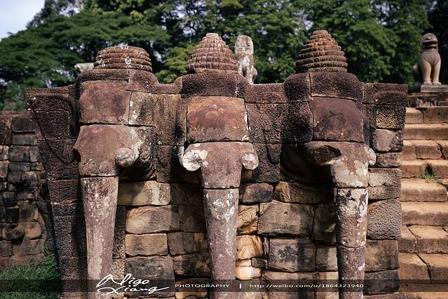 (Terrace of the Elephants)战象平台是国王阅兵的平台,正对着通往胜利之门的大道,从胜利门凯旋而归的将士们就在这里接受国王的检阅。它和癞王台、巴方寺构成一个整体建筑,12世纪末由阇耶跋摩七世建造。它的外墙上有许多精美的雕刻,值得仔细观赏。