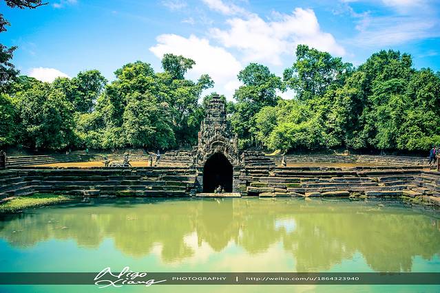 (Neak Pean)的意思是“缠绕的巨蛇”,就这么小小的神庙,在水中央,在蓝天白云的衬托下,亭亭玉立,美得像一颗水中明珠。