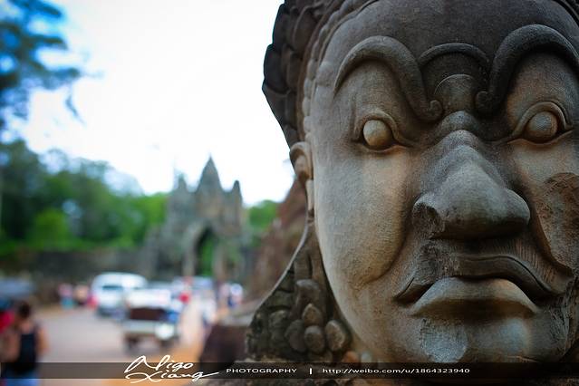 寺庙的规模很大,结构复杂。东西两个大门前巨石铺成的长长的参道两旁的阿修罗和天神手抱巨蛇,再次演绎“搅拌乳海”的场景!~