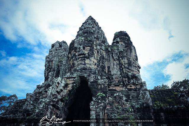 吴哥通王城(Angkor Thom),也称“大吴哥,吴哥通城,吴哥城,洲城”,Thom读“通”,是“大”的意思,按照梵文原意,Angkor是“城市”的意思,那么Angkor Thom就是“大城市”的意思。吴哥通王城是吴哥王朝的首都,始建于9世纪,多次毁于战火,后几经重建。现今一直是12世纪末、13世纪初由柬王闍耶拔摩七世所建。“胜利门”,城门上面是面向四方的四面佛像。