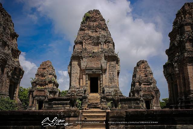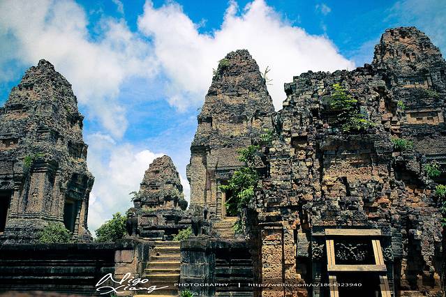 比粒寺位于东梅奔寺(East Mebon)的南侧约1.5公里的地方,也是一座金字塔式建筑,通东梅奔寺建造在同一时期,但规模比其巨大。比粒寺是进行火葬仪式的地方。 比粒寺(PRE RUP)为古代皇族火化变身为神之神殿,又称变身塔。可以看到烧焦过的痕迹,千年前在此举行仪式,定是达官云集,不能随便进入的。是典型塔山建筑,基座上建造砖塔。它的结构与塔松寺(TA SOM)很相似,因属红砖结构,在夕阳照耀下泛着暖暖的红; 加之这里开阔的视野,吸引着一些游客在此看日落。