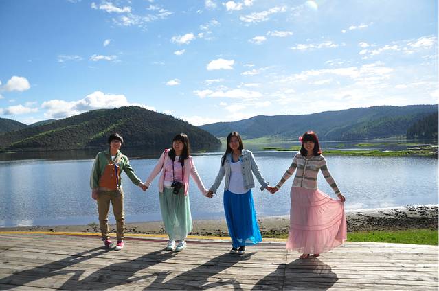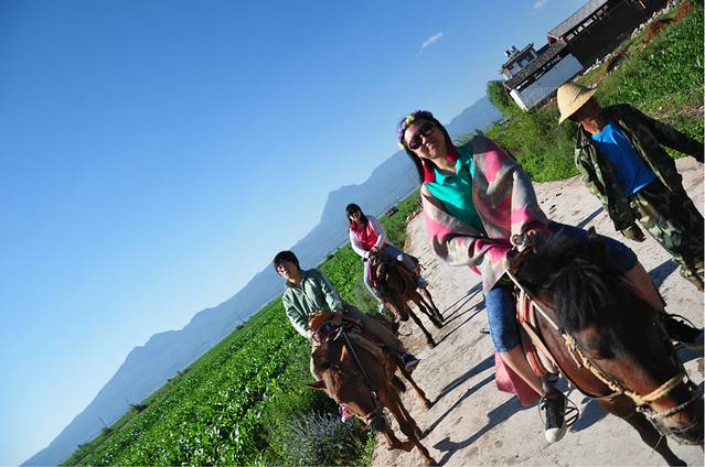 走之前看网上拉市海的一日游都160左右,实际古城都80,开始还怀疑品质,后来发现其区别就是骑马的时长,80的是骑马一个半小时,贵的骑得时间再长一点,相信我,一个半小时够了,先不说你的屁股受得了受不了一个半小时,光是烈日炎炎晒得你就够了。