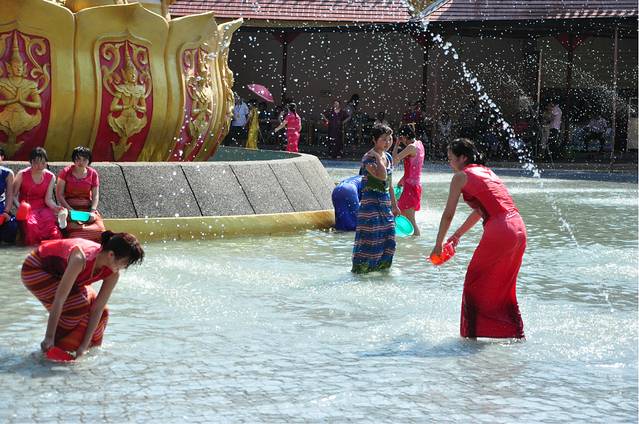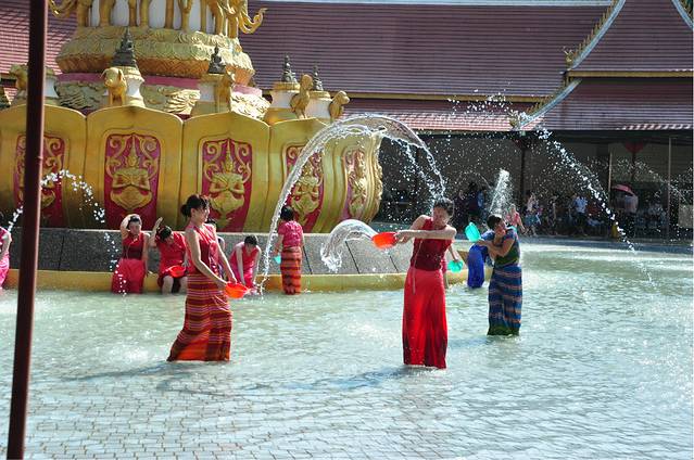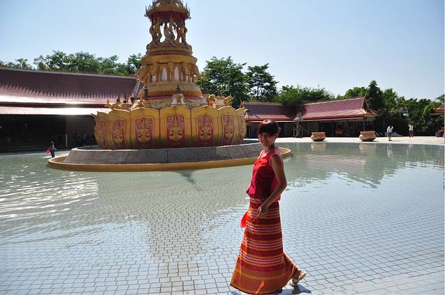 之后就冲去总佛寺玩泼水了,因为太热了,泼水的时间是15:50开始,泼水的费用包括租衣服水盆更衣柜什么的是40,如果买单程的电平车票40是可以免泼水费用的,所以当然要买车票啦,往返电平车票是60,含讲解。总佛寺的门票是多少来着我忘记了。。。