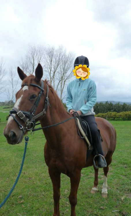 今儿又骑了 没有马镫没人扶所以试着蹦上去(正确方法是跳一下 自己肚子趴到马背上 然后右腿绕过去)但是由于我的跳跃能力实在有限 蹦半天肚子也上不去 搬个凳子过来迈上去