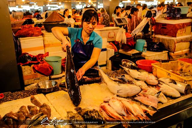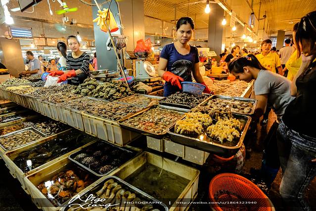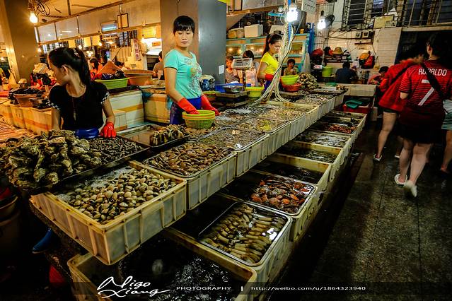 第一市场的人真的真的是非常超级多,这是我第二天下午四点提早去拍的,第一天去的时候全是人头,买海鲜一般都是加工店的人带你去挑的,速度很快,最好自己要看一下,我们第一天的一个大叔挑的海鲜比较好,第二天一个女的带我们去的就差些,基围虾的头里都比较脏!~