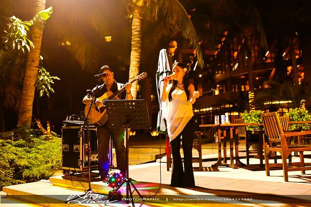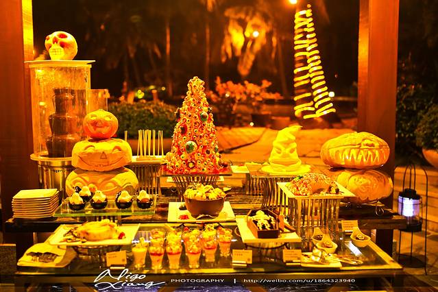 铂尔曼的夜景,酒店有自己的自助餐,吃的人还挺多的,老外偏多,正值万圣节,酒店有一些万圣节的布置,还有驻场歌手助兴,每晚都会听她唱两首歌,然后玩一小时水,真的是挺惬意的!~