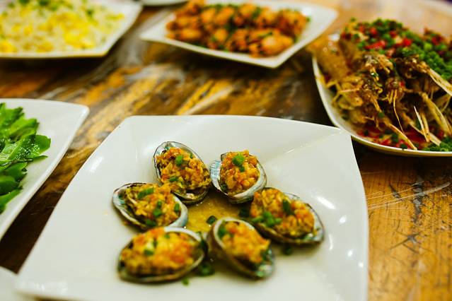 蛋蛋最爱小鲍鱼和基围虾!~还有芒果螺和三亚本地的四角豆!~