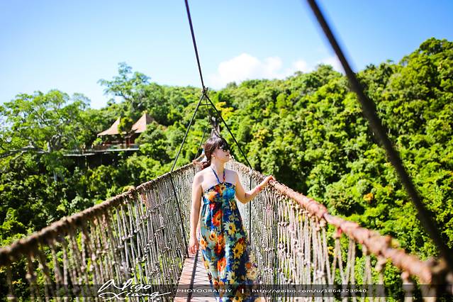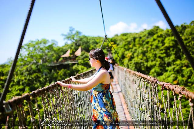 我对这个桥其实非常恐高,因为有游客会故意让桥抖动!~尼玛的,总之,不是愉快的体验!~但还是抖抖索索帮蛋蛋拍了两张!~蛋蛋有良好的遗传基因,完全没反应,不愧是女汉子!~