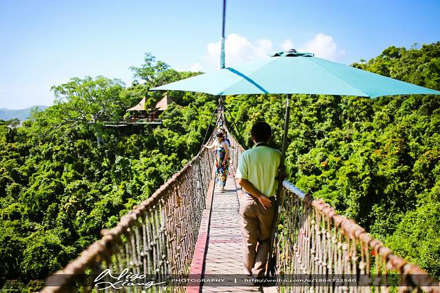 亚龙湾热带天堂森林公园位于三亚市东南方向25公里处,即亚龙湾国家旅游度假区两侧山体,总面积1506公顷,分东园和西园,环抱着“天下第一湾”。园区尊重自然与生态,强调个性与特色。植被类型为热带常绿性雨林和热带半落叶季雨林,景观建设极尽生态自然,可开展登山探险、野外拓展、休闲观光、养生度假、科普教育、民俗文化体验等多种旅游活动。同时,山峦与海景融合一体的绝美风光也吸引了大量新婚夫妇选择此地来拍摄婚纱照。