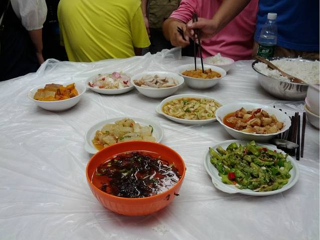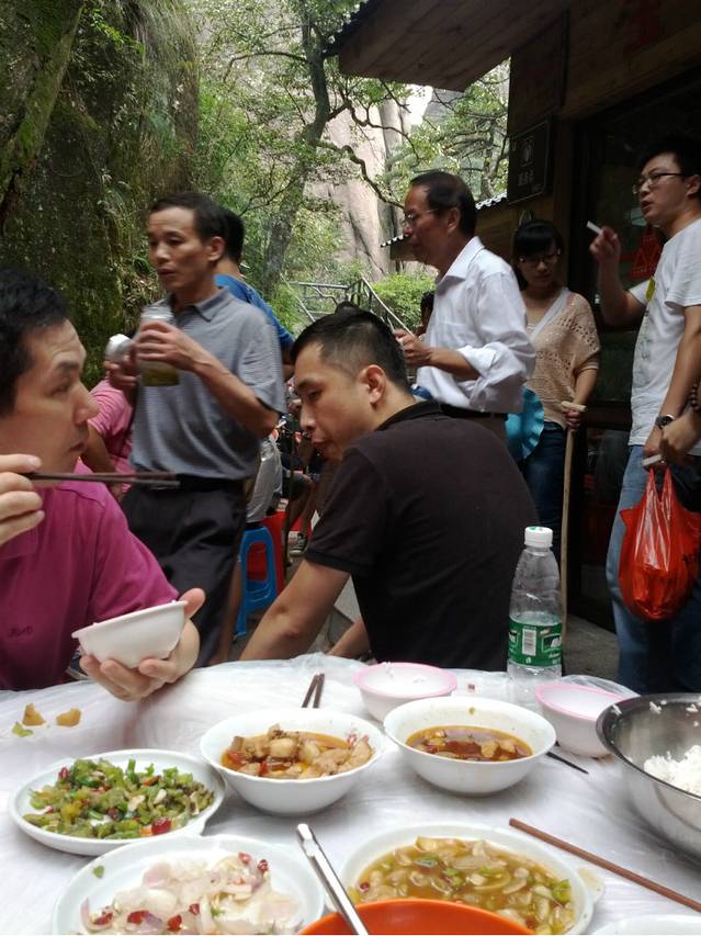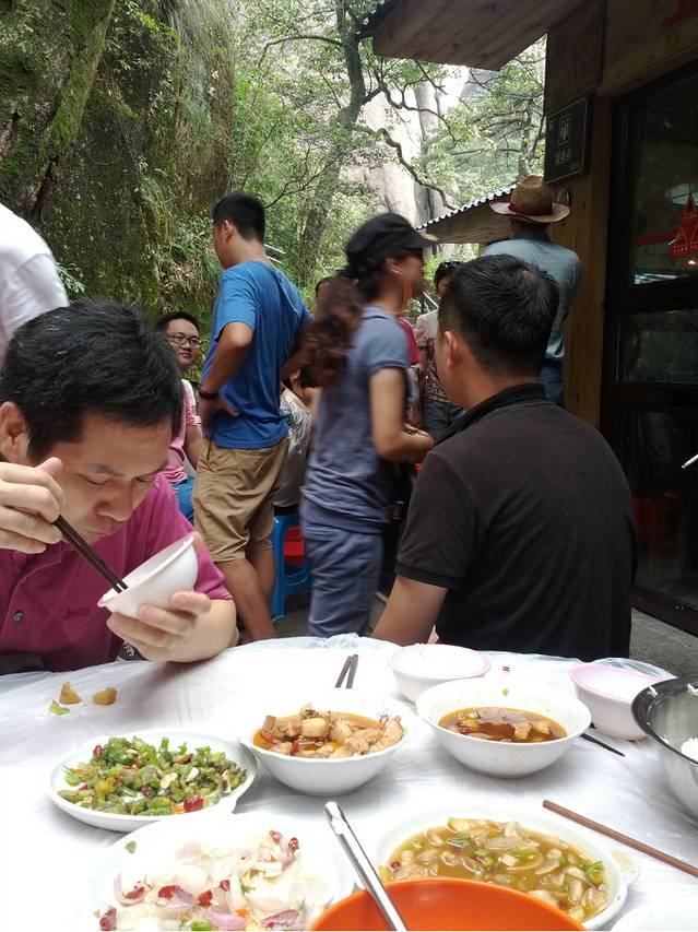 午饭是在山顶的玉皇顶山庄吃的,在山上吃的东西要特别珍惜,都是挑夫辛苦挑上去的,口味就别计较太多啦。